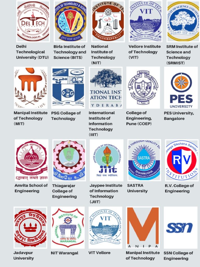 A: BITS Pilani (BITSAT), NIT Trichy/DTU (JEE Main), VIT/SRM (VITEEE/SRMJEEE). - Q: Do these colleges offer international placements?